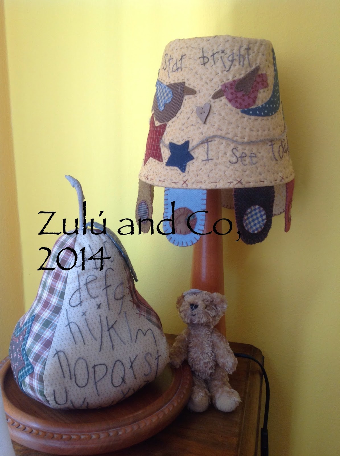 + la estructura de una lámpara revieja, tela, lanas, cordel, hilos, tijeras, algún botón y una piruleta: